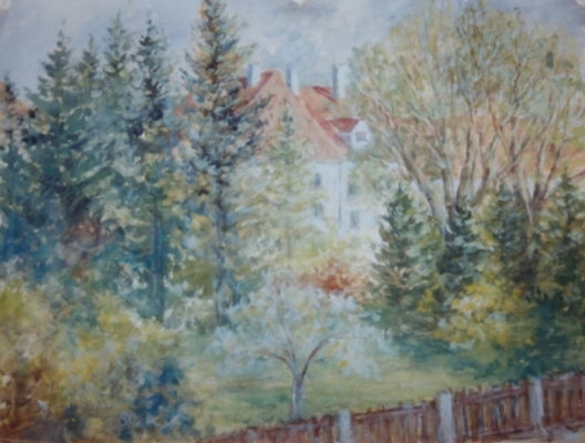 Die Abbildung zeigt den Blick vom Balkon des Künstlers in den Hinterhof seiner Münchner Wohnung.