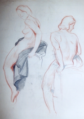 Rötel und Bleistift auf Papier